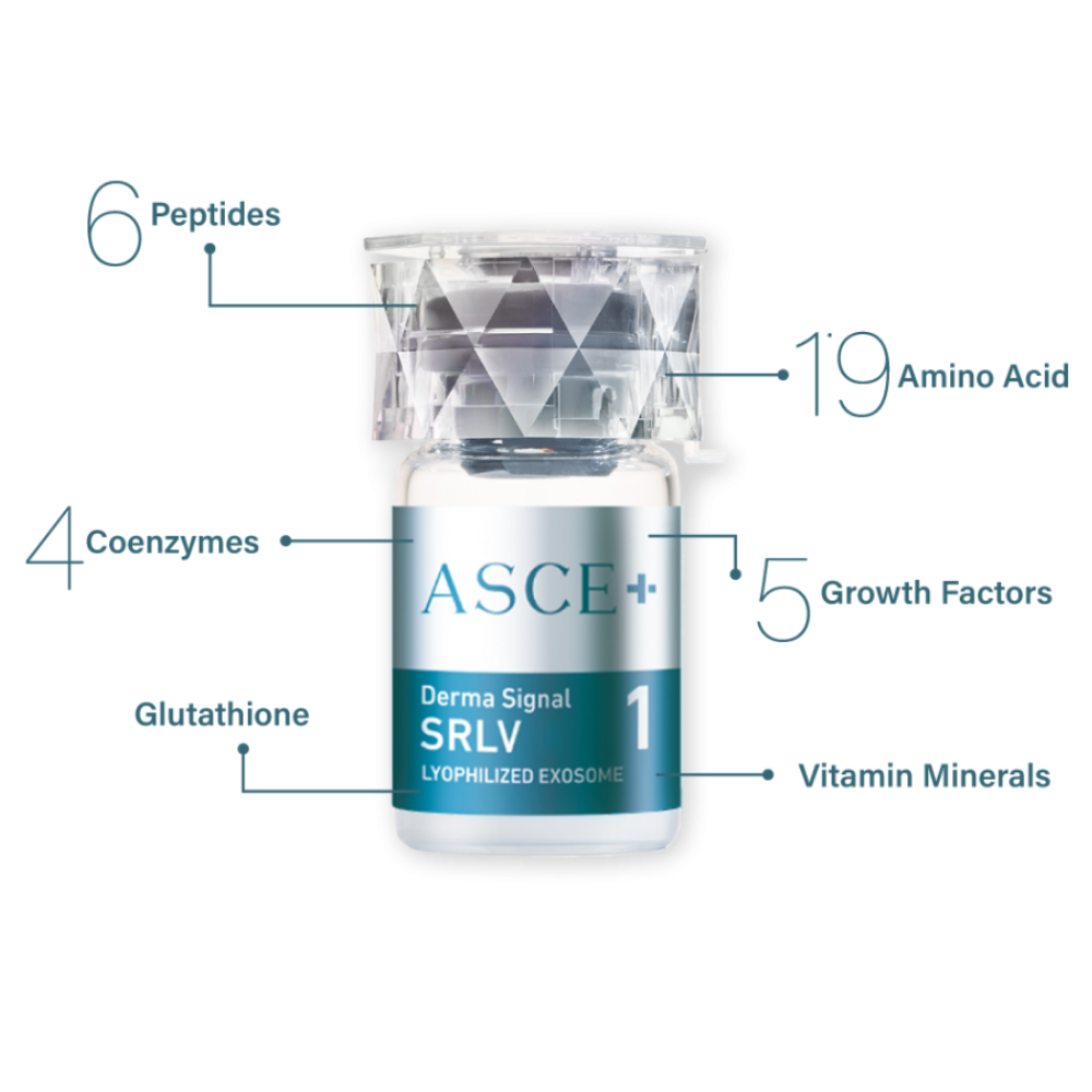 ASCE+ SRLV brukes ofte i kombinasjon med estetiske behandlinger som microneedling, laser eller andre hudforyngende prosedyrer for å maksimere effekten. Produktet inneholder frysetørkede exosomer som blandes med en aktiv løsning rik på hyaluronsyre, vekstfaktorer, peptider, vitaminer og antioksidanter.