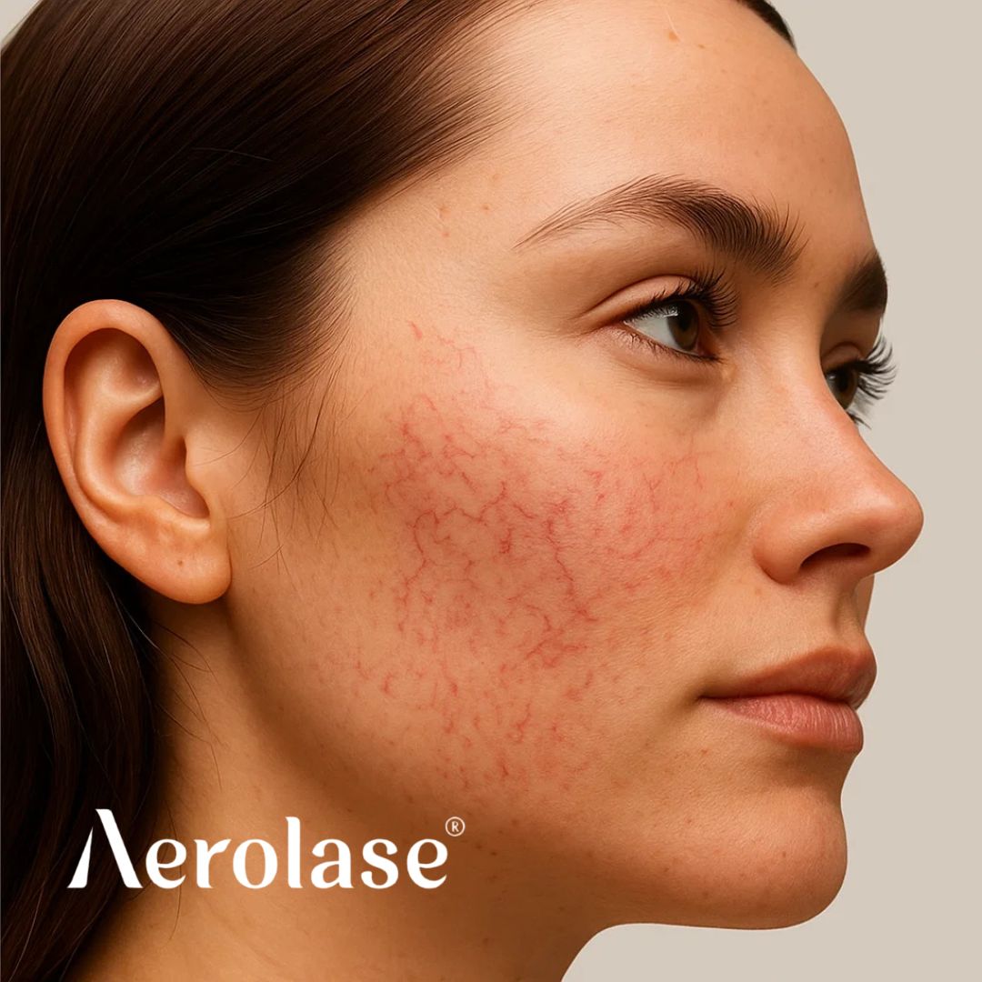 Aerolase® behandler effektivt sprengte blodkar ved å målrette og koagulere synlige kapillærer, reduserer rødhet, forbedrer hudtonen og styrker hudens generelle utseende med 3 til 4 behandlinger med 4 ukers mellomrom.