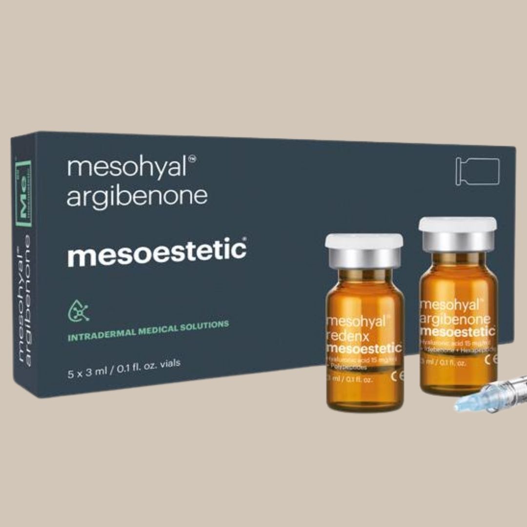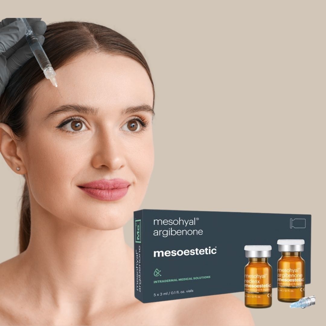 Mesoestetics® Fotoaldring og Solskade Behandling kombinerer den kraftfulle argibenone med hyaluronsyre for å bekjempe tegn på fotoaldring og solskader. Denne avanserte behandlingen er utviklet for å revitalisere huden, redusere pigmentering, og gjenopprette hudens glød og ungdommelige utseende. Argibenone er kjent for sine sterke antioksidantegenskaper, som beskytter huden mot frie radikaler og miljøskader.