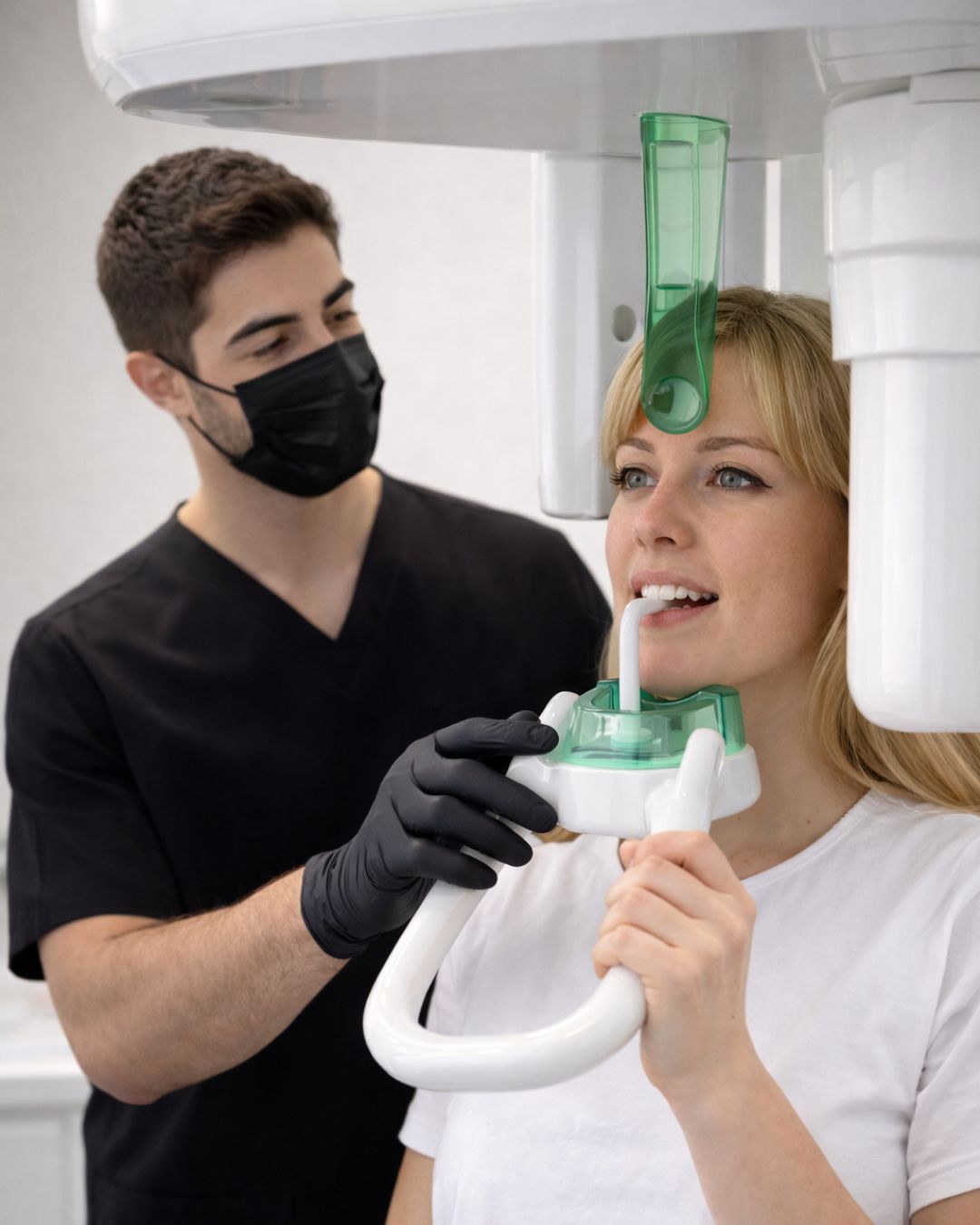 Panoramarøntgen er et oversiktsbilde som viser alle tenner i over- og underkjeven, røtter, kjeveledd, kjeveben og visdomstenner i ett samlet bilde. Dette gjør det mulig å oppdage skjulte infeksjoner, retinerte tenner, cystiske forandringer, bentap, utvikling av visdomstenner og andre forhold som ikke alltid sees på vanlige intraorale røntgenbilder. Hos CLINICA® bruker vi panoramarøntgen som et viktig diagnostisk verktøy ved tannundersøkelser, implantatplanlegging, visdomstannvurderinger og ved større behandlingsplaner for å sikre en trygg og presis vurdering av hele tannsettet.